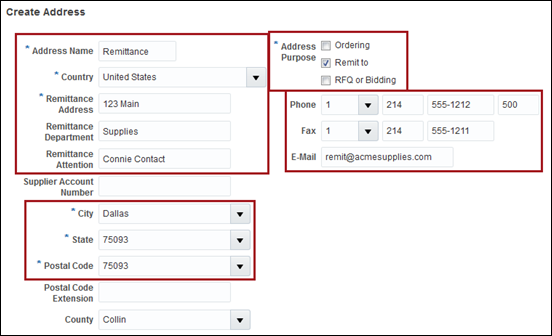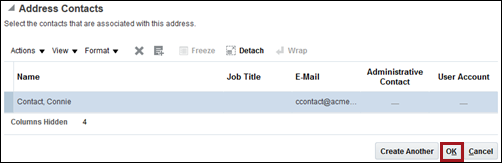 In the Addresses section, click Actions and select Create. The Create Address pop-up displays. | ![]() |