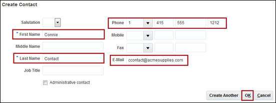 In the Contacts section, click Actions and select Create. The Create Contact pop-up appears. | ![]() |