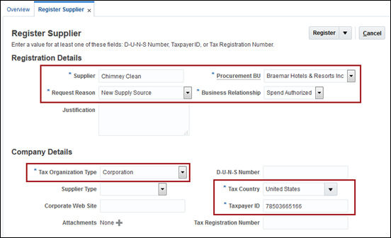 Prior to creating a supplier registration request, verify that the supplier does NOT already exist in Oracle ERP by completing the steps in Search for a Supplier. |