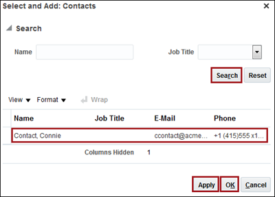 In the Address Contacts section, click Actions and select Select and Add. The Select and Add: Contacts pop-up appears. | ![]() |