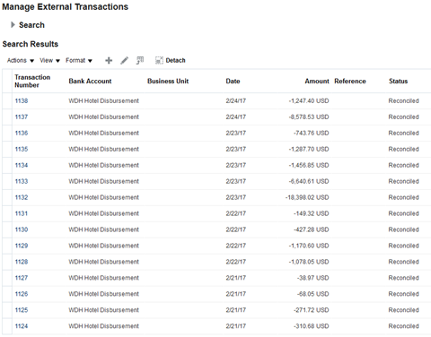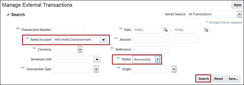 Click Search. The reconciled transactions appear. |