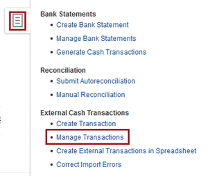 The Manage External Transactions page appears. |
