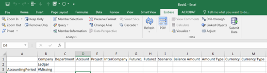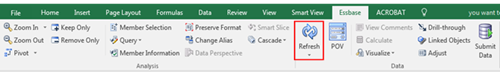 Select Refresh to retrieve data from the configured Essbase cube. |